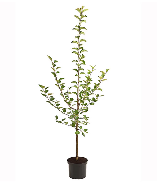 Das Baum-Duo wurde auf einer schwachwüchsigen Unterlage veredelt und erreicht nur eine Größe von 2,5 bis 3,5 m, die in fast jedem Hausgarten Platz finden sollte. Ideal sind ein sonniger Standort sowie ein leichter, nährstoffreicher und feuchter Boden. Das Apfel-Duo ‘Jonagold‘/‘Boskoop‘ kann ganzjährig gepflanzt werden, die beste Zeit ist allerdings der Herbst, damit es sich in Ruhe an seinen neuen Standort gewöhnen und gut einwurzeln kann. Das Pflanzloch sollte mindestens doppelt so groß sein wie der Wurzelballen. Achten Sie beim Hineinsetzen der Apfelbäume darauf, dass die Veredelungsstellen etwa 10 cm über der Erde befinden. Dann einschlämmen und vorsichtig festtreten. Ein regelmäßiger Schnitt sowie eine jährliche Düngung zum Beispiel mit Dehner Bio Obstbaumdünger sichern gute Erträge.