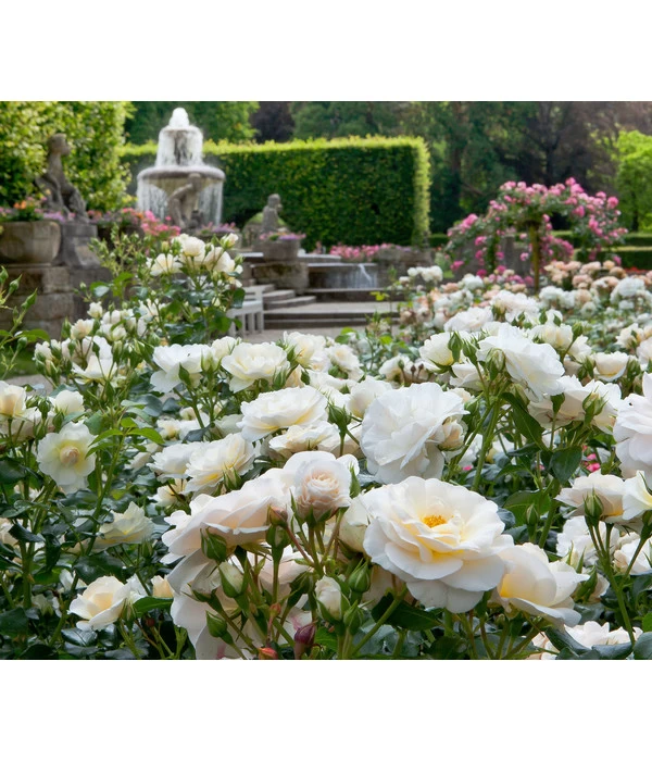 Mit der Beetrose Beetrose ‚Martin Luther Rose®‘ können Sie die verschiedensten Pflanzideen verwirklichen. Bei größeren Flächen und zur Hangbegrünung schätzen Gärtner nicht nur den überreichen Blütenflor, sondern auch, dass sich die Blüten selbst “ausputzen“, also die Blütenblätter fallen lassen. Sie präsentiert ihren anmutigen Blütenflor aber auch in romantischen Staudenbeeten zwischen Lavendel, Lupinen und Schleierkraut. Setzen Sie 4-5 Rosenpflanzen pro m², mit einem Abstand von 40-45 cm zwischen den einzelnen Pflanzen.