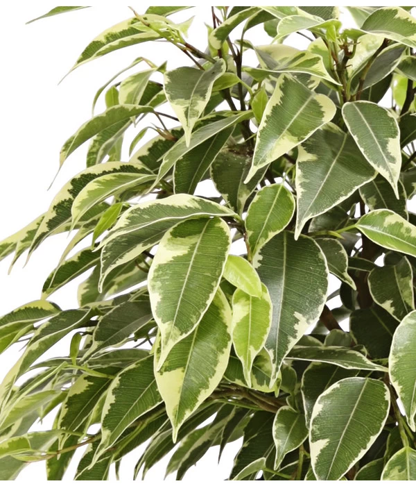 Die robuste Birkenfeige mit ihren glänzenden Blättern gehört zu den besonders beliebten Zimmerpflanzen. Sie ist vielen auch als ‚Benjamini‘ oder auch Kleinblättriger Gummibaum bekannt und überzeugt durch ihren gesunden Wuchs und ihr dekoratives Blattwerk. Die Sorte ‚Kinky‘ besitzt etwas kleinere Blätter und wächst kompakter und gedrungener, als ihre großen Geschwister.