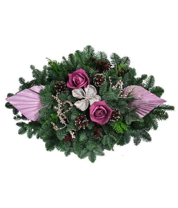 Richten Sie die letzte Ruhestätte eines einzigartigen Menschen an Allerheiligen oder am Totensonntag besonders hübsch her, um das Andenken an den lieben Verstorbenen aufrechtzuerhalten? Dafür eignet sich das bezaubernde Grabbukett von Dehner. Als Grundlage für dieses elegante Gesteck fungieren robuste, immergrüne Kiefern- und Tannenzweige. Dank dieser Basis sieht die Dekoration enorm lange frisch und pietätvoll aus. Die außergewöhnlichen Schaumrosen in der Mitte ziehen die Blicke auf sich und verleihen dem Bukett einen Hauch Romantik.