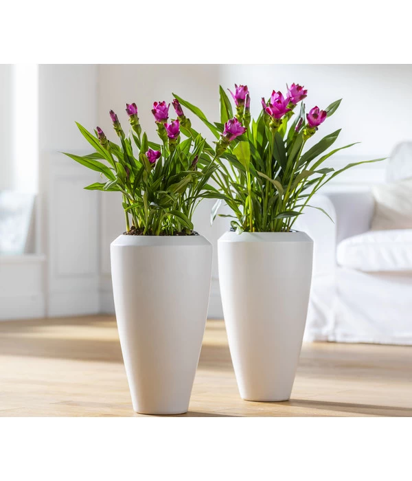 Exotische Pflanzen, die im Zimmer ein außergewöhnliches Flair verleihen, sind beliebt wie eh und je und so lockt auch die Indische Safranwurz oder Kurkuma mit ihren spektakulären Blüten alle Blicke auf sich. Dabei sind das was wir als Blüten bezeichnen eigentlich Hoch- bzw. Deckblätter, die die kleinen unauffälligen Blüten der Safranwurz schützen. Diese Blütenköpfe stehen auf langen, aufrechten Stielen, über dichten Laub, das mit einer dunkelroten Blattader durchzogen ist. Die Indische Safranwurz kommt ursprünglich, wie der Name schon sagt, aus dem Festlandgebiet Südostasiens und stammt aus der Familie der Ingwergewächse. Ihre nahe Verwandte ist die Curcuma longa, deren Wurzel meist Verwendung in der Küche findet, als Gelber Ingwer, Safranwurzel oder eben als Kurkuma.