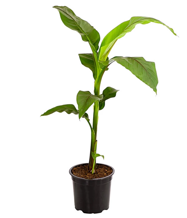 Aus dem fernen Südostasien trat die Banane erst vor 400 Jahren den weiten Weg nach Europa an. Die leckeren süßen Früchte gehören zu den beliebtesten Obstsorten der Deutschen und ist somit Standartsortiment in jedem Supermarkt. Doch die Bananenpflanzen sind noch echte Exoten hierzulande. Die Japanische Faserbanane, wie sie aufgrund ihrer fasrigen Blätter eigentlich heißt, kann bei entsprechender Pflege, eine Höhe von bis zu drei Metern erreichen. Ihre großen dekorativen Blätter verbreiten ein faszinierend, exotisches Flair im Wohnraum, dass uns von Urlauben in südlichen Gefilden träumen lässt. Auch wenn der Bananenbaum nach nach einigen Jahren Blüten bilden kann, ihre Früchte werden immer ungenießbar bleiben, da die diese aufgrund der kurzen Vegetationsperiode nicht ausreifen können. Doch um in den Genuss zu kommen und allein das Vergnügen zu beobachten, wie sich diese Zierbanane mit ihren helllaubigen, ausladenden Blättern zu einer prächtigen Solitärstaude mit außergewöhnlicher Ausstrahlung entwickelt und in jedem Wohnraum und auch im Garten einen beeindruckenden Blickfang darstellt – dafür ist die Japanische Faserbanane allemal die Richtige!