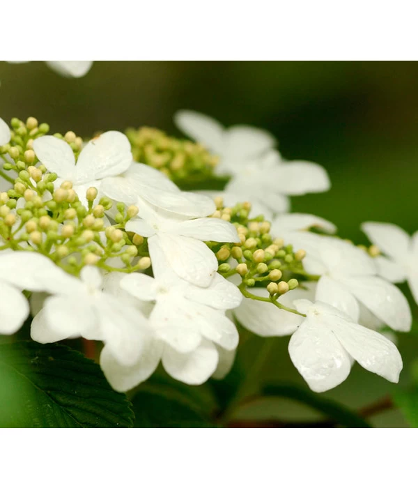 Wenn ein Japanischer Schneeball das erste Mal in Ihrem Garten sein Blütenschauspiel aufführt, werden Sie sofort verstehen, wie es zu dem Namen ‘Kilimandjaro‘ kam. Wie der höchste Berg Afrikas, der ganzjährig eine schneebedeckte Spitze trägt, reckt sich das Ziergehölz dem Himmel entgegen – über und über mit schneeweißen, doldenartigen Tellerblüten bedeckt. Unterstützt wird die grandiose Wirkung durch den etagenartigen Wuchs mit den nahezu waagerecht wachsenden Ästen. Wir sind uns sicher, dass Sie zur Blütezeit des Japanischen Schneeballs im Mai und Juni anderen Ziergehölzen kaum Beachtung schenken werden und auch die Blicke der Nachbarn werden von dem außergewöhnlichen Schmuckstück schon von Ferne angezogen. Zumal ein Japanischer Schneeball ‘Kilimandjaro‘ eine stattliche Höhe von 200-300 cm bei einer ebensolchen Breite erreichen kann. Reservieren Sie diesem Prachtstück gleich ein besonderes Plätzchen in Ihrem Garten und freuen sich nach der Blütezeit auf den Herbst. Denn dann wird Sie der Zierstrauch mit einer leuchtenden Herbstfärbung und dunklen Früchten dazwischen beeindrucken.
