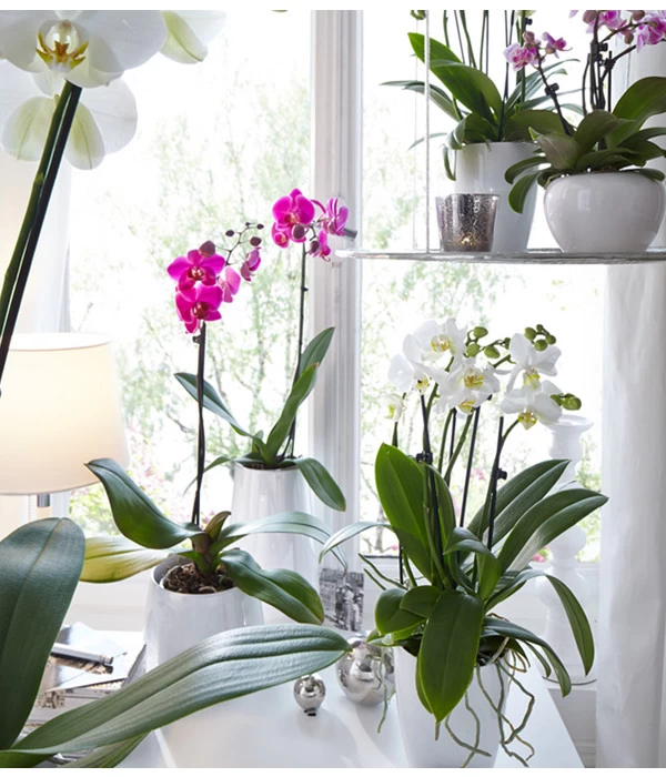 Sie gehören ohne Zweifel zu den beliebtesten Pflanzen auf unserer Fensterbank: die Orchidee. Das hat auch seinen Grund, denn anmutig schweben die zahlreichen Blüten, wie Schmetterlinge über der Blattbasis der Orchidee. Dabei ist sie überaus blühfreudig und robust, da die Pflanzen, selbst bei wenig Pflege, über mehrere Monate hinweg, blühen. Gerade deshalb eignen sie sich auch hervorragend für ungeübte Orchideenfreunde. Schmetterlingsorchideen, wie sie auch oft genannt werden, gibt es in einer Vielzahl von Blütenfarben und -formen, von uni bis mehrfarbig, von zartem Pastellrosa bis hin zu kräftigem Violettrot. Elegant, grazil, exotisch – zarte Einzelpflanze oder prachtvolles Ensemble: Lassen Sie sich verzaubern von der einzigartigen Welt der Orchideen.